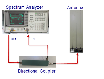 The test equipment for tuning includes a spectrum analyzer, such as HP 8591E with tracking generator and a directional coupler, such as Narda 3000-10 and suitable connectors/adaptors. The antenna length can be adjusted by trimming the length of the rod of the antennas. Loosen the lock-screw on the base of the antenna, remove the antenna rod, and trim it so that the antenna resonates on the desired frequency. Trim a little, re-install, re-measure resonant frequency, and repeat.